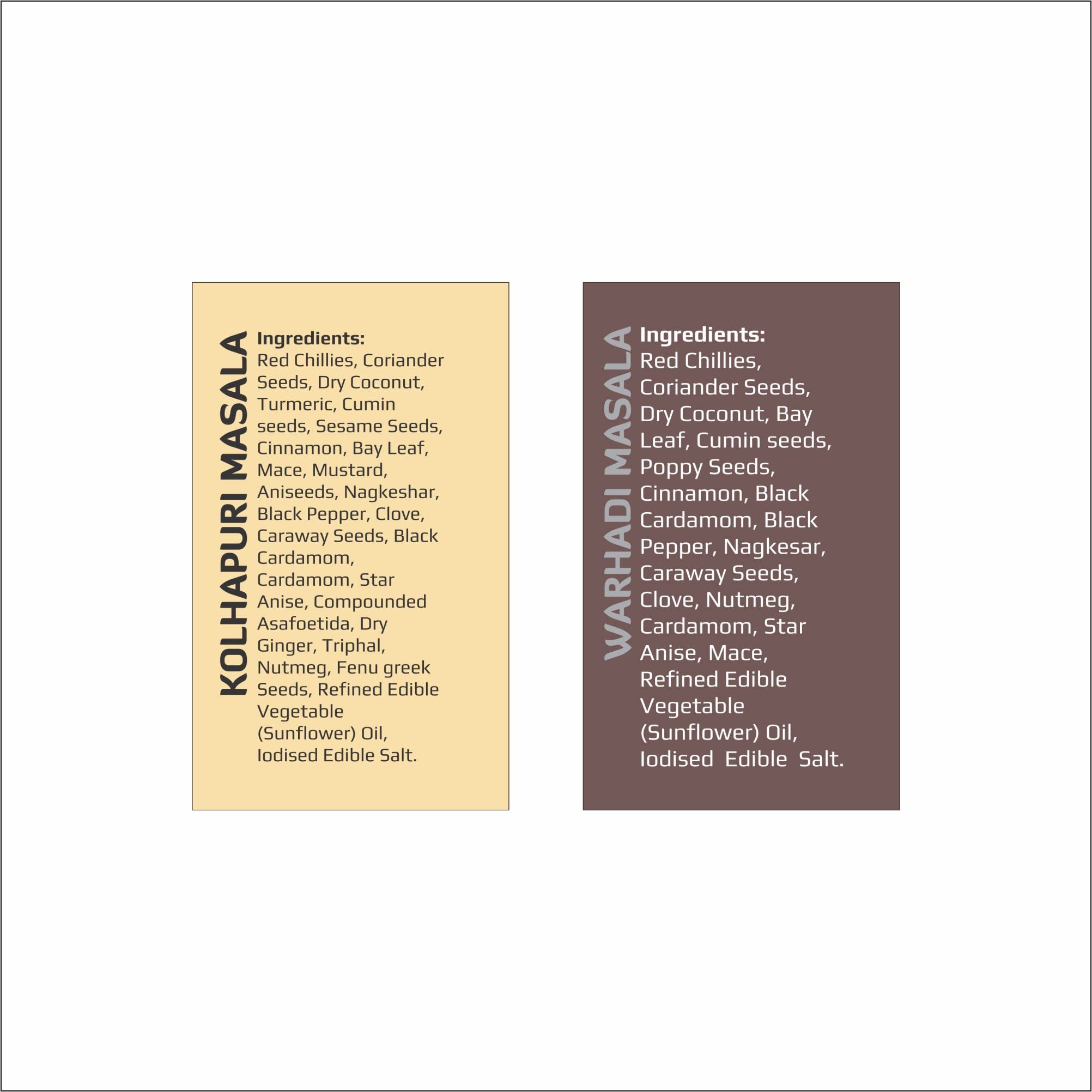 2 packs of Kolhapuri Masala and 2 packs of Warhadi Masala 50g each