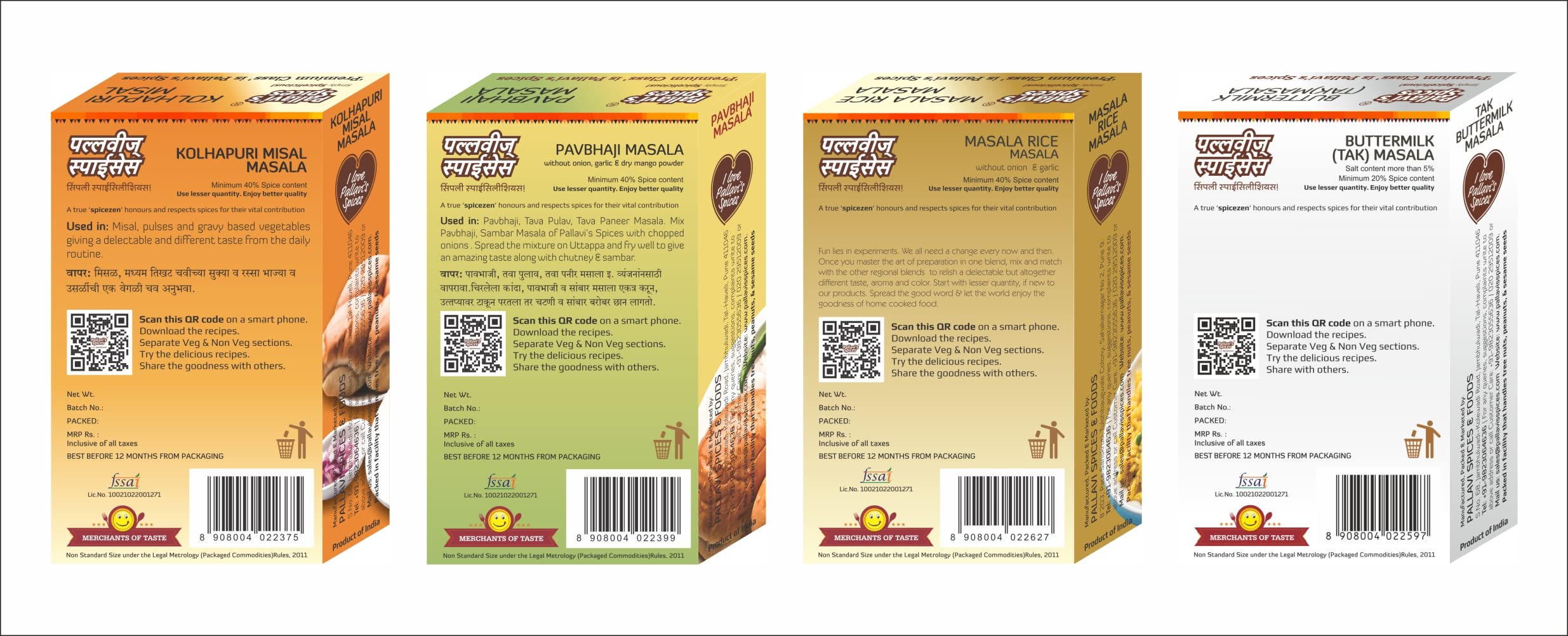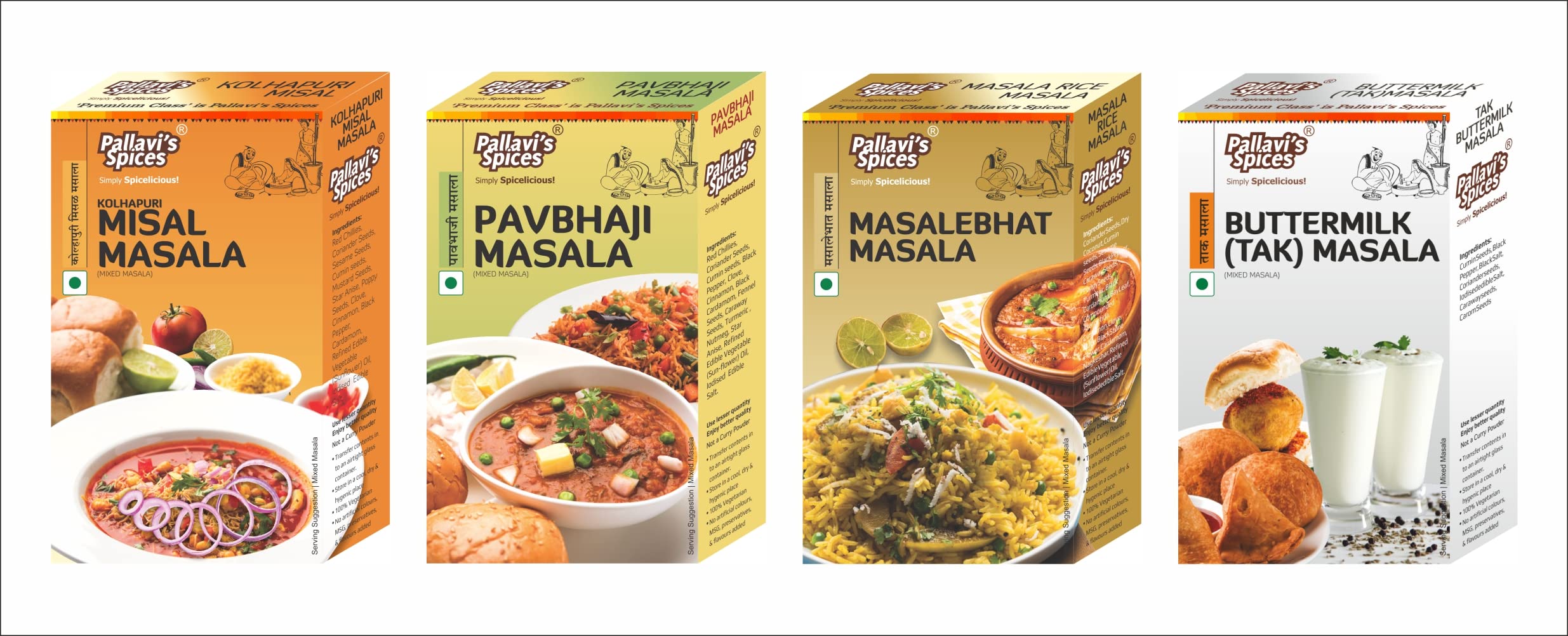 Pallavi's Spices Kolhapuri Misal masala Pavbhaji Masala Masalebhat Masala and Tak Masala 250g (Pack of 4)