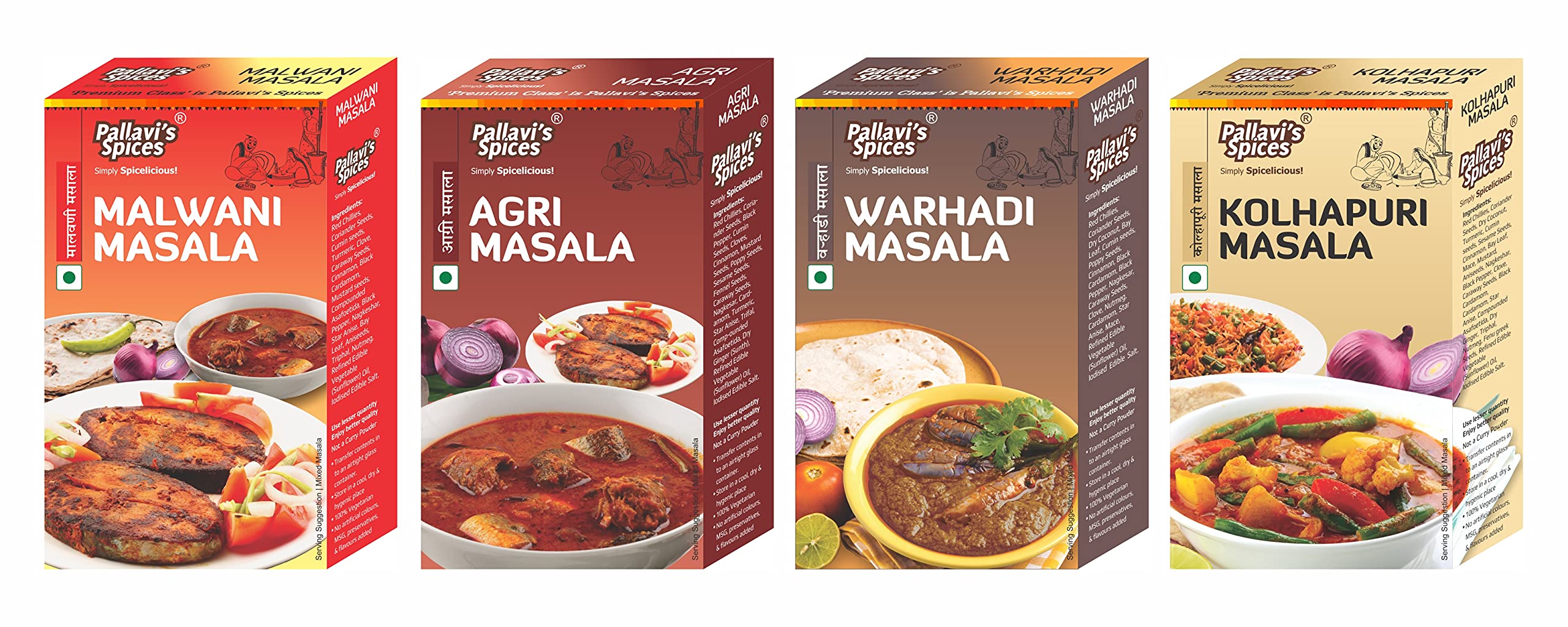 1 Spices Malwani Masala1 Agri Masala 1 Kolhapuri Masala and 1 Warhadi Masala