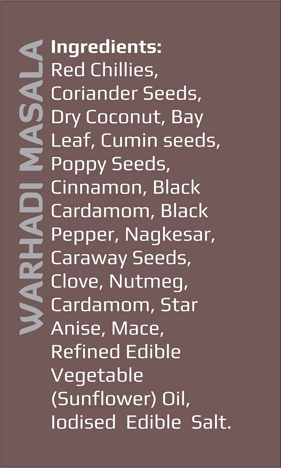 List of Included Items: 1 Spices Malwani Masala1 Agri Masala 1 Kolhapuri Masala and 1 Warhadi Masala (50 g each)