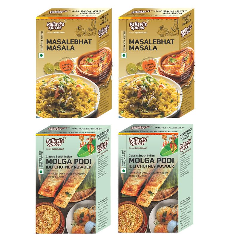 Pallavi's Spices Masalebhat Masala (50gx2) Molgapodi Masala (100gx2) | No Artificial Color | No Preservatives | Indian Masala | Pack Of 4