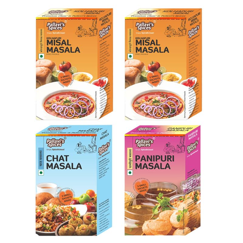 Pallavi's Spices offers a diverse selection of Indian masalas perfect for adding authentic flavors to your dishes. Each pack contains five small separate sachets to retain freshness of expertly blended spices crafted to complement a variety of recipes. Ideal for home cooks these masalas are designed to enhance the taste of your favorite meals with traditional Indian flavors.
