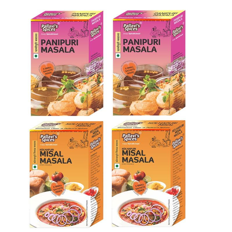 Pallavi's Spices Misal Masala (50gx2) Panipuri Masala (50gx2) | No Artificial Color | No Preservatives | Indian Masala | Pack of 4