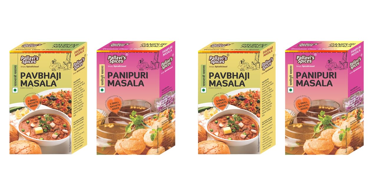 Pallavi's Spices Pavbhaji (50gx2) Panipuri Masala (50gx2) | No Artificial Color | No Preservatives | Indian Masala | Pack of 4