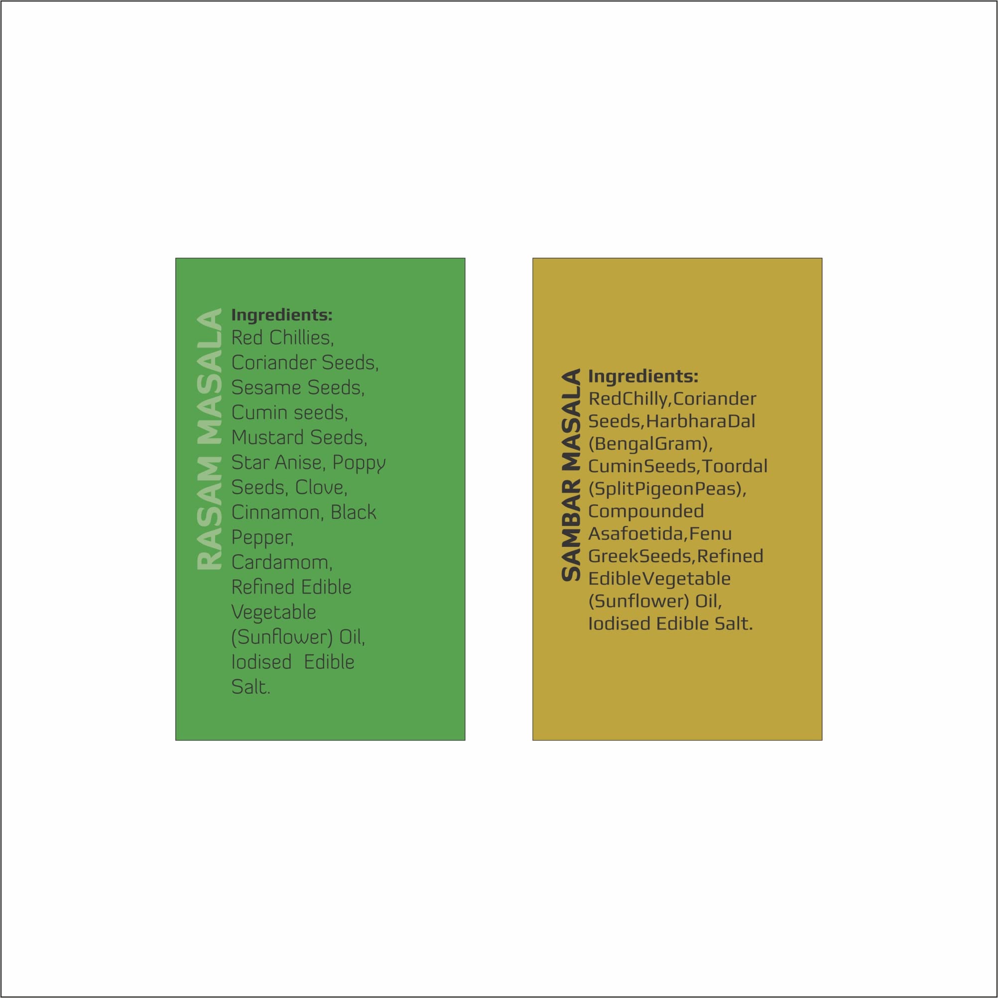 2 packs of Sambar Masala and 2 packs of Rasam Masala 50g each