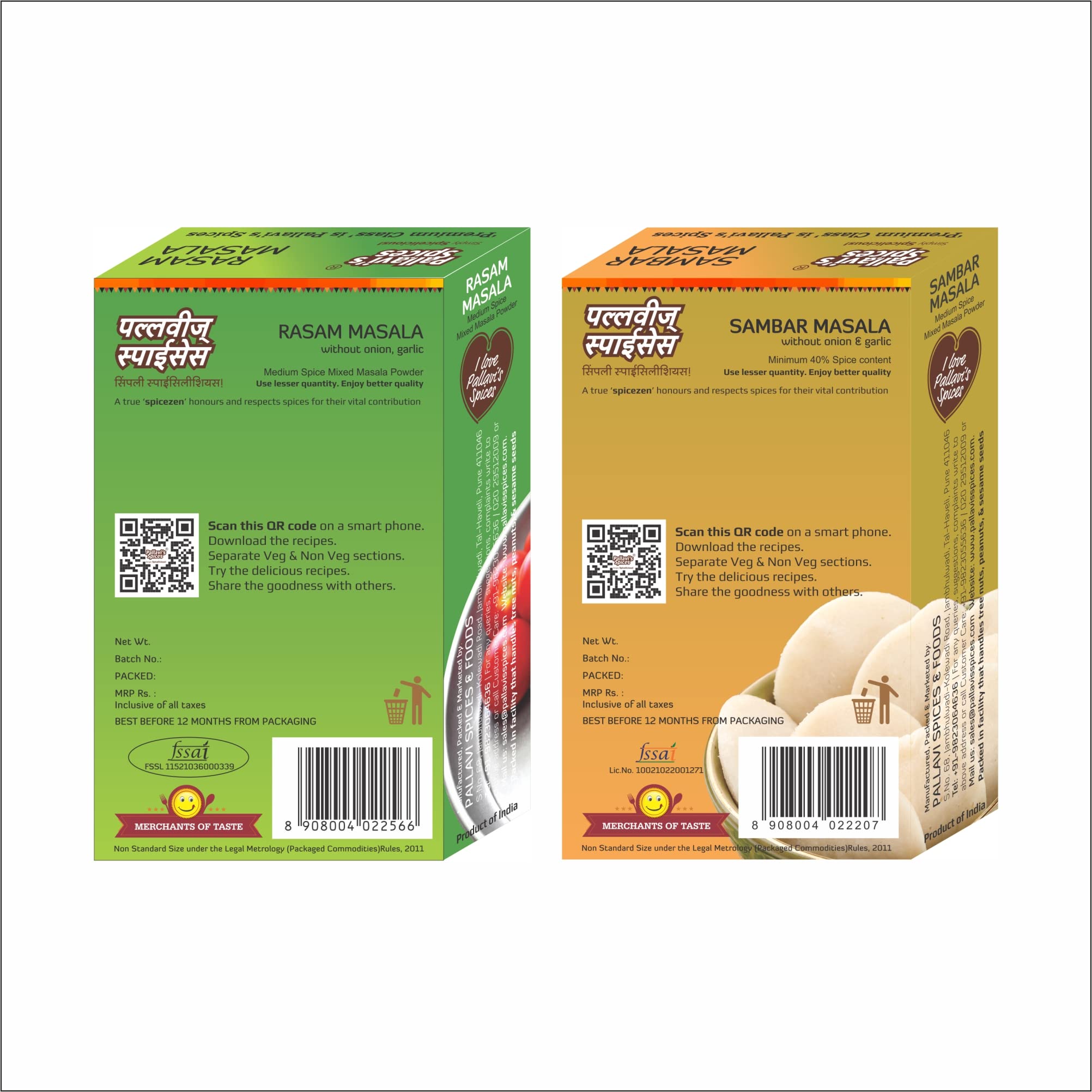 Pallavi's Spices Sambar Masala and Rasam Masala 200g (Pack of 4) 2 each