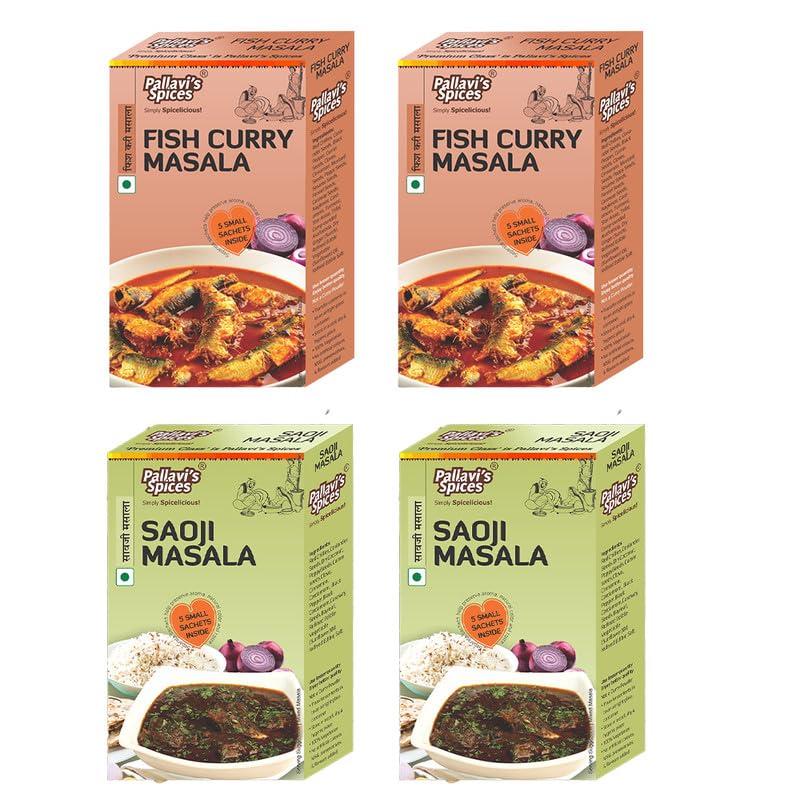 Pallavi's Spices Saoji Masala (50gx2) Fish Curry Masala (50gx2) | No Artificial Color | No Preservatives | Indian Masala | Pack of 4