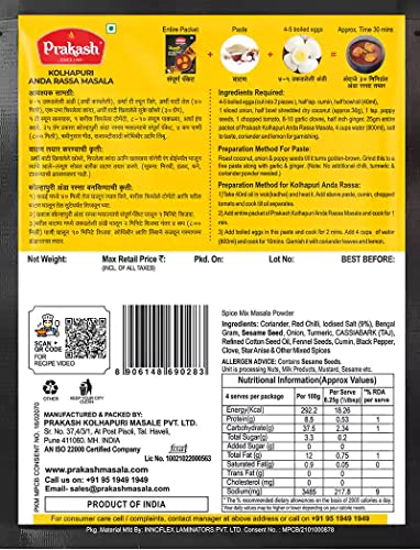 Prakash Kolhapuri Andda Rassa Masala 25 gram | Pack of 4 | Ready to Use Kolhapuri Andda Rassa Masala | Easy to cook | Authentic Maharashtra Spices | Serves 4 (Per Pack) | No Preservatives Colours or Artificial Flavours