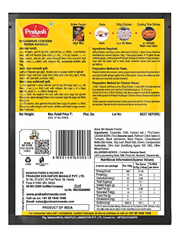 • Package Includes: Kolhapuri Chicken Rassa Masala 25 GM