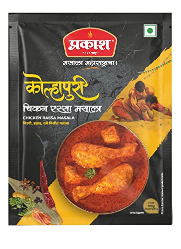 Prakash Kolhapuri Chicken Rassa Masala 25 gram | Pack of 4 | Ready to Use Kolhapuri Chicken Rassa Masala Masala | Easy to cook | Authentic Maharashtra Spices | Serves 4 (Per Pack) | | No Preservatives Colours or Artificial Flavours