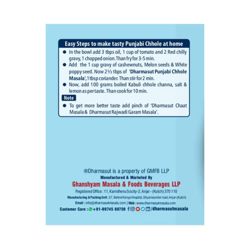 Dharmasut Punjabi chhole masala is natural which gives you a freshly grounded taste of masala. If you want to make restaurant Style Chole at home then Dharmasut chhole masala is best for you. By using our chhole masala powder you will get spicy tangy and dark-colored punjabi chhole at home.