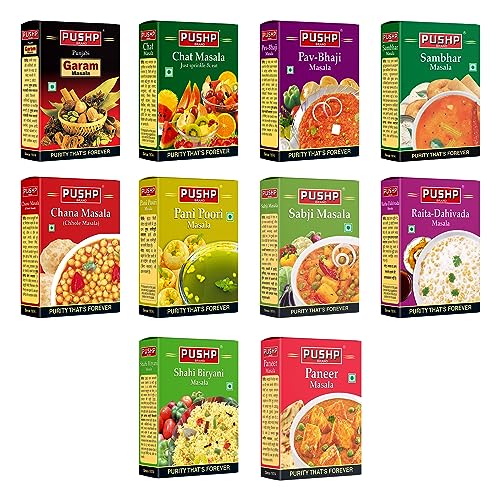 Pushp Brand Combo Pack 50g Each (Punjabi Garam Masala Chana Masala Chat Masala Pav Bhaji Masala Sambhar Masala Biryani Masala Paneer Masala Sabji Masala Raita Masala Pani Puri Masala)