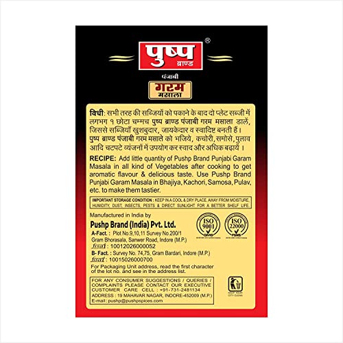 Pushp Brand Punjabi Garam Masala Pouch (Pack of 1 200g pack)