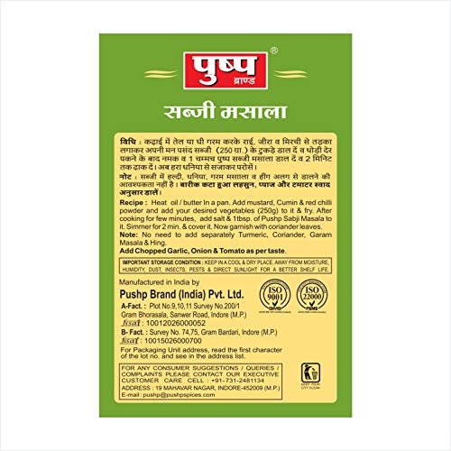 100% NATURAL:- Pushp sabji masala is 100% natural no added preservatives.