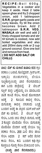S.R.R Veg Curry / Sabji Masala(Pack Of 6)80Gms Each. No Added Flavors Or Colors