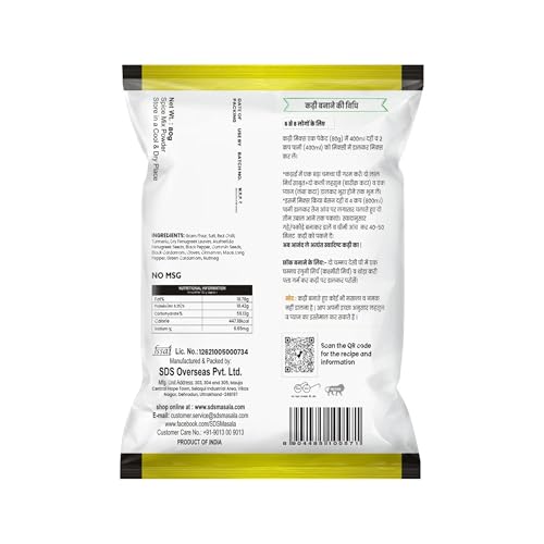 POTENTIAL FOR ENHANCEMENT: SDS Kadhi Mix includes spices like turmeric cumin and fenugreek contributing to its robust flavors. These spices might also offer potential health benefits. Enjoy the enhanced taste and the possibility of well-being in every bit