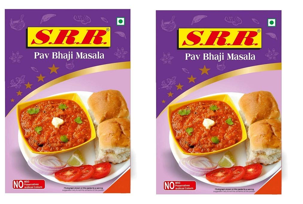 SRR All Natural PAU Bhaji Pav Bhaji Masala Pack of 2 Packs x 50 Grams Each -100 Grams No Artificial Flavors or Colors