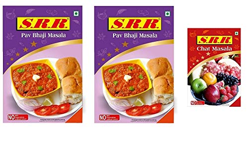 SRR All Natural PAU Bhaji Pav Bhaji Masala Pack of 2 Packs x 50 Grams Each -100 Grams with Chat Masala Free 10 Grams No Artificial Flavors or Colors