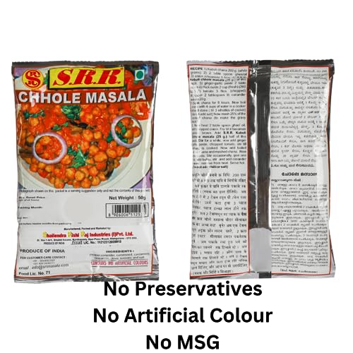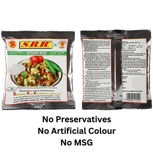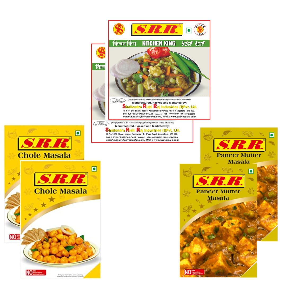 SRR PANEER MASALA 50 Grms x 2SRR CHOLLE MASALA 50 Grms x 2 AND SRR KITCHEN KING MASALA 30 Grms x2 ; Total 6 pieces. No Artificial color No MSG No Preservatives