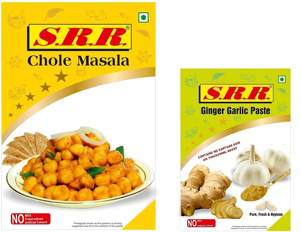 SRR Punjabi Chole Chhole Masala 500 Grams with Ginger Garlic Paste Free No Artificial Colors or Flavors