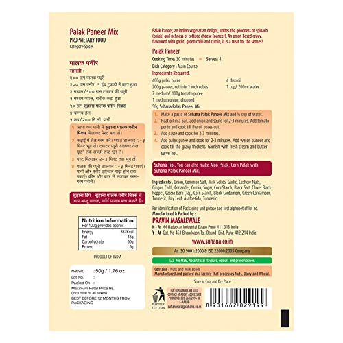 Suhana Palak Paneer Spice Mix 50g Pouch - Pack of 6