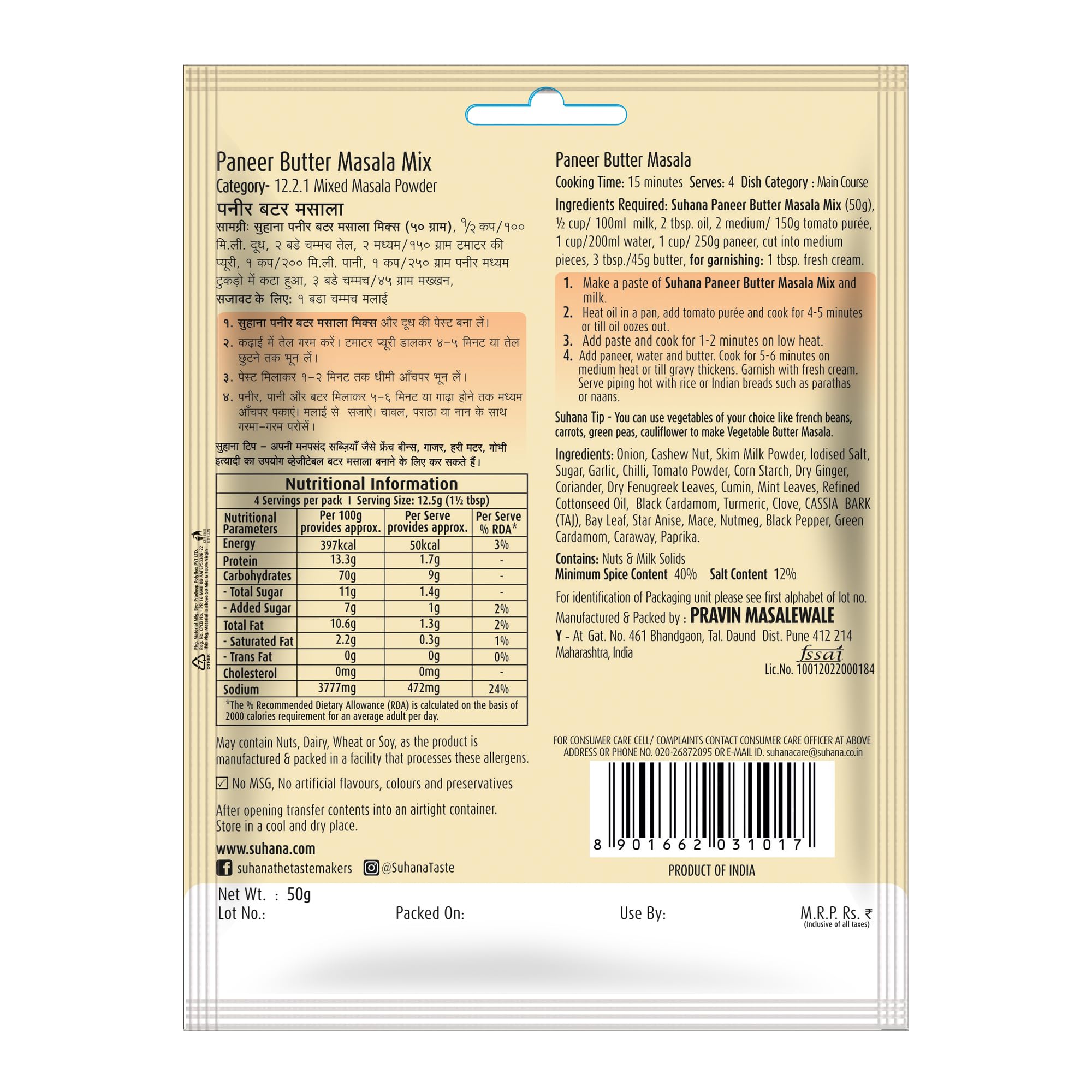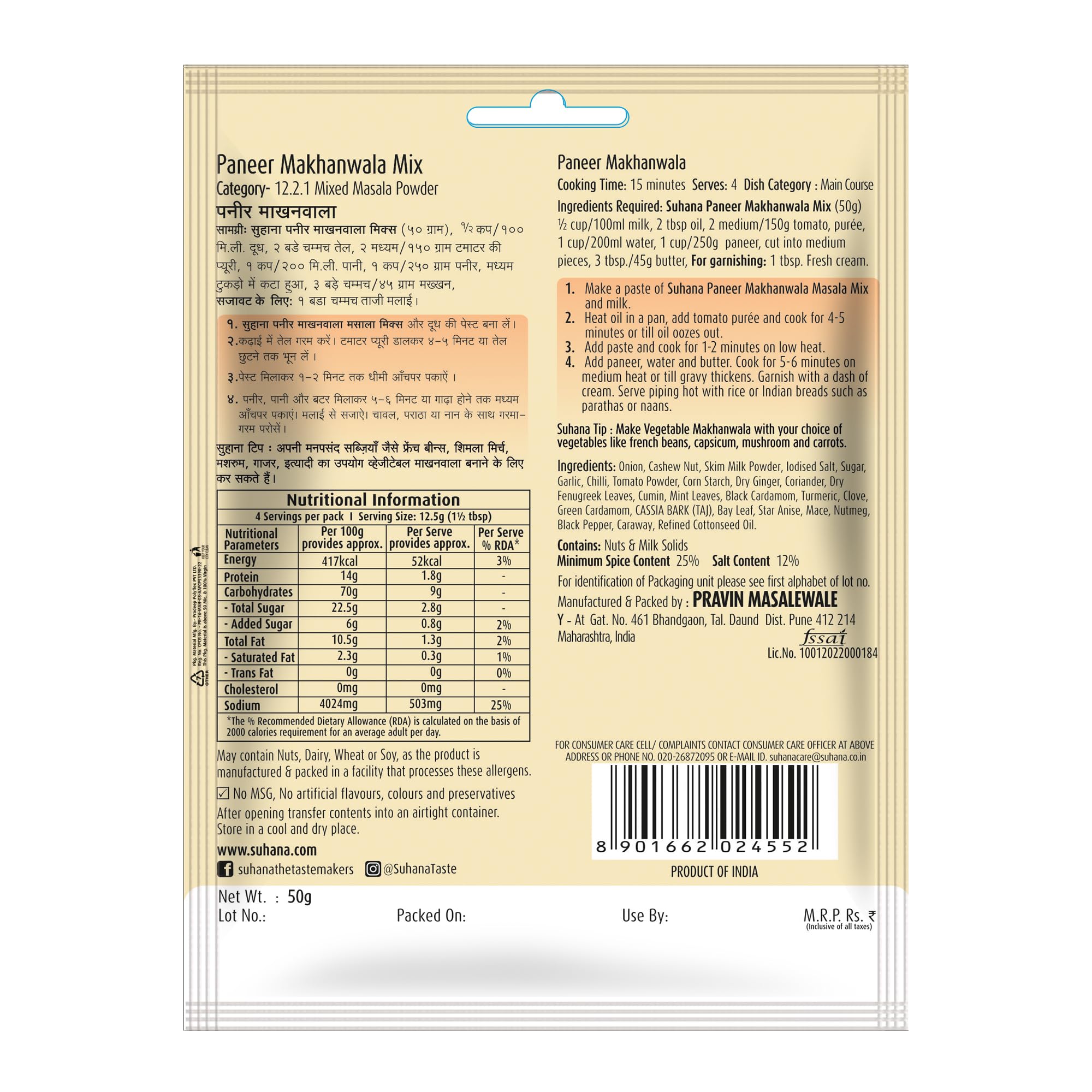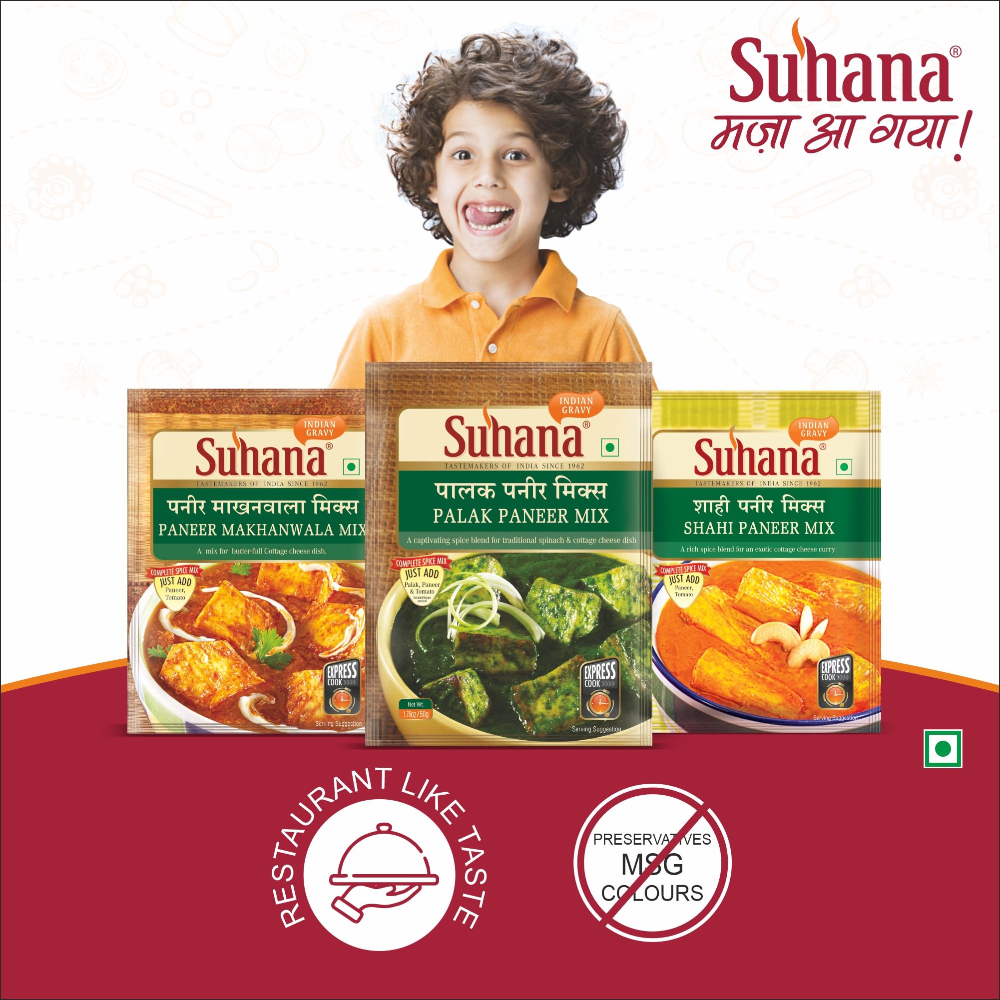 Use 'Suhana Paneer Makhanwala Paneer Tikka Shahi Paneer Mutter Paneer Paneer Butter Palak Paneer Paneer Bhurji Mix to create a truly memorable meal!