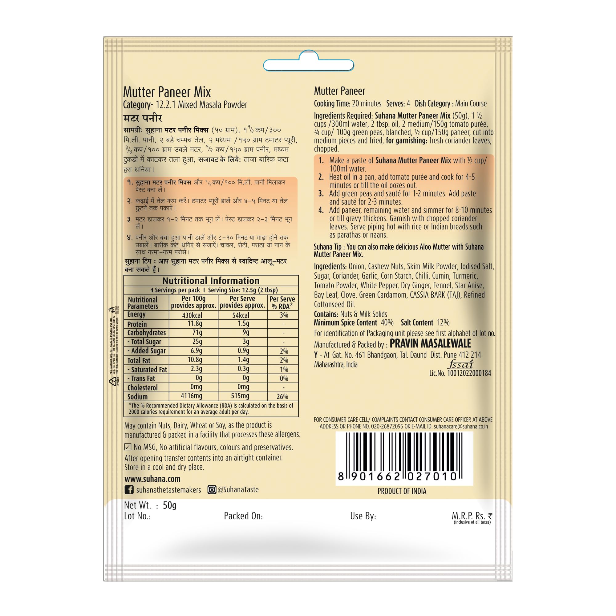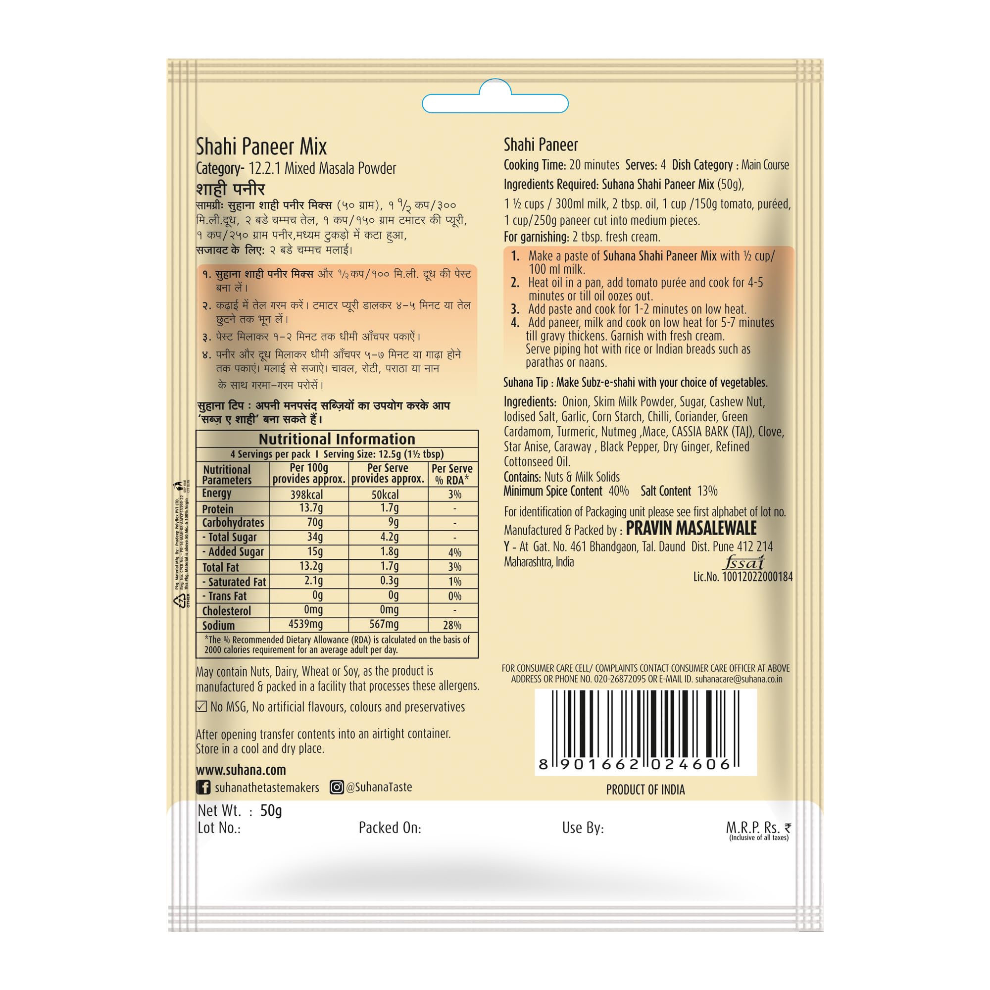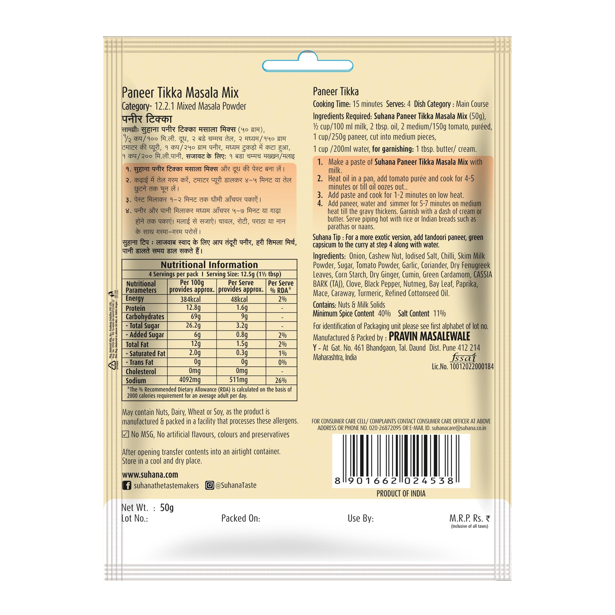 Use 'Suhana Paneer Makhanwala Paneer Tikka Shahi Paneer Mutter Paneer Paneer Butter Palak Paneer Paneer Bhurji Mix to create a truly memorable meal!