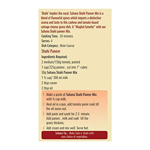 Suhana Shahi Paneer Spice Mix 50g - Pack of 4