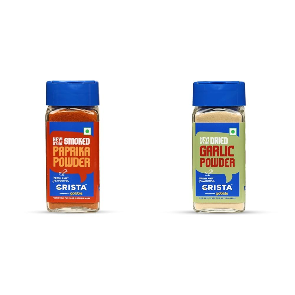 CRISTA Essential Ground Spices Combo - 2 | Paprika Powder X 1 45 gms & Garlic Powder X 1 45 gms | No Added Colours Fillers & Preservatives | Pack of 2