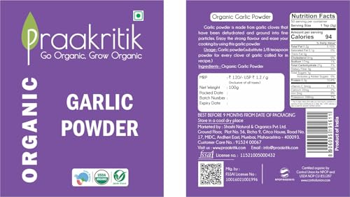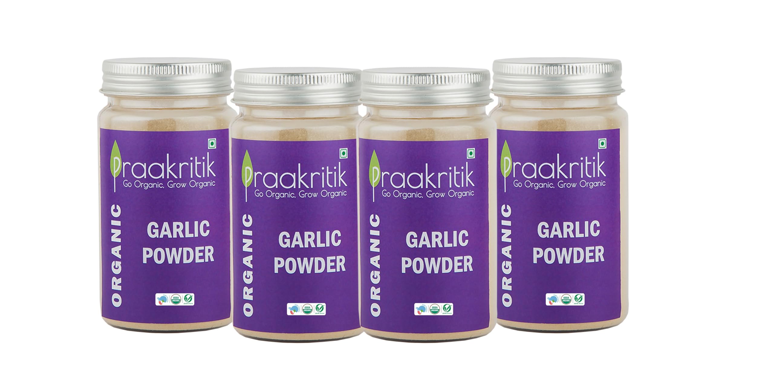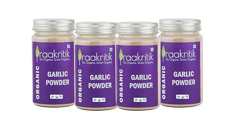 Praakritik Organic Garlic Powder | 100% Organic & 100% Natural | Ready to Use | 100% Vegetarian | No Added Preservatives and Colors | Pack of 4 | 100 Grams Each