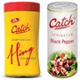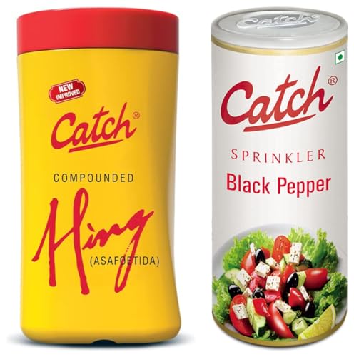 Catch Compounded Hing 100gCatch spices is Indiaâs foremost spices brand known for its matchless product quality and innovative approach. Catch spices are ground using the unique state-of-the-art Low Temperature Grinding (LTG) technology which prevents the evaporation of volatile and delicate oils from spices. Catch spices thus retain the original aroma and wholesome flavour of authentic spices.Catch Black Pepper Sprinkles 100gCatch spices is Indiaâs foremost spices brand known for its matchless product quality and innovative approach. Catch spices are ground using the unique state-of-the-art Low Temperature Grinding (LTG) technology which prevents the evaporation of volatile and delicate oils from spices. Catch spices thus retain the original aroma and wholesome flavour of authentic spices.