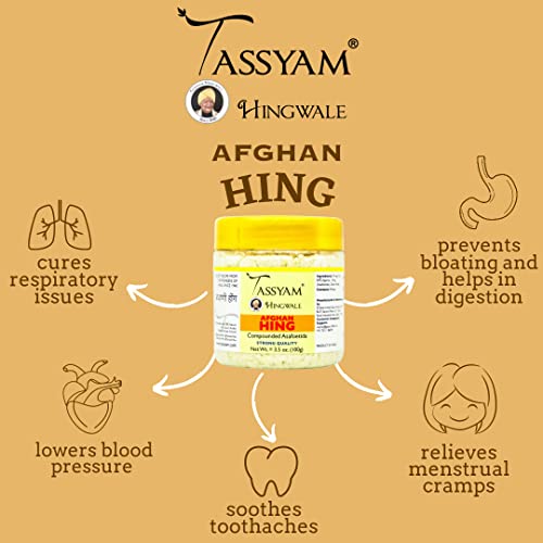 Tassyam Hingwale Asafetida 3.5 oz (100g) Afghan Hing | Hand Pounded & Natural | Onion Garlic Substitute