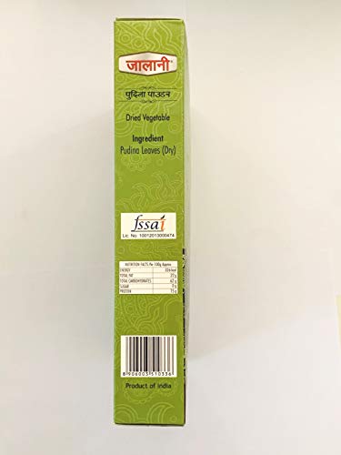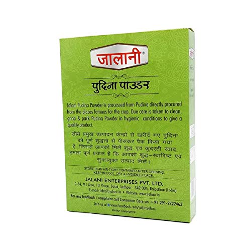 Jalani Pudina Powder gives mouth-watering taste and flavour to vegetables salads curd pulses various types of curries tikkas and other dishes.Due care is taken to clean grind & pack Pudina Powder in hygienic condition to give a quality product