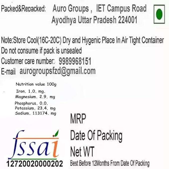 AWADH- Vastu salt- Khada salt (500 grams) - Suddh Namak- Negative energy Cleanser/Remover Sea Salt - Traditional Crystal White Salt Village Salt Sabut Namak Desi Namak |