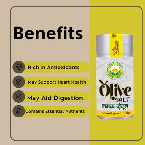 • Basic Ayurveda Olive Salt is an ideal natural ayurvedic mixture for various conditions such as blood sugar control digestion hypertension and cholesterol. Besides olives are a rich source of vitamin E iron copper and calcium.
