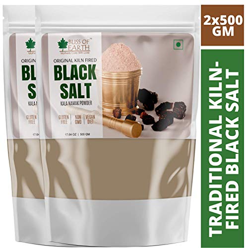 Bliss of Earth 2X500gm Traditional Kiln Fired Black Salt Powder Kala Namak Non Iodized for weight loss & Healthy Cooking, Natural Substitute of White Salt