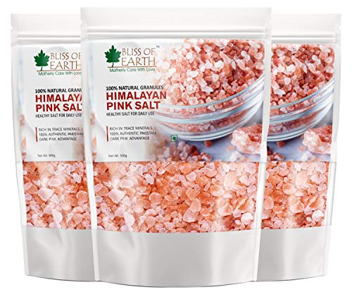 Bliss of Earth 3X500 gm Granular Pakistani Himalayan Pink Salt Non Iodized for Weight Loss & Healthy Cooking, Natural Substitute of White Salt