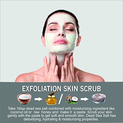 • Take 1 table spoon. Dead sea salt combined with a moisturizing ingredient like coconut oil or raw honey and make it in to a paste. Scrub your skin gently with the paste to get soft and smooth skin. Dead sea salt has detoxifying hydrating and moisturizing