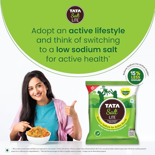 Stressful lifestyle coupled with altered food habits have led to an exponential increase in the occurrence of lifestyle diseases such as high blood pressure. Tata Salt Lite has 15% lesser sodium compared to regular salt for a healthy lifestyle without compromising with the taste of your dishes. The Tata Salt Lite low sodiumalso consists of Iodine which helps in proper mental development of children and prevents Iodine deficiency disorders in adults. Along with that it is recommended that you follow a regular exercise routine. Use this salt to make your favourite meals like biryani veggies soup etc. delicious and healthy at the same time. #TakeItLite with Tata Salt. Storage: Keep in a cool dry place.