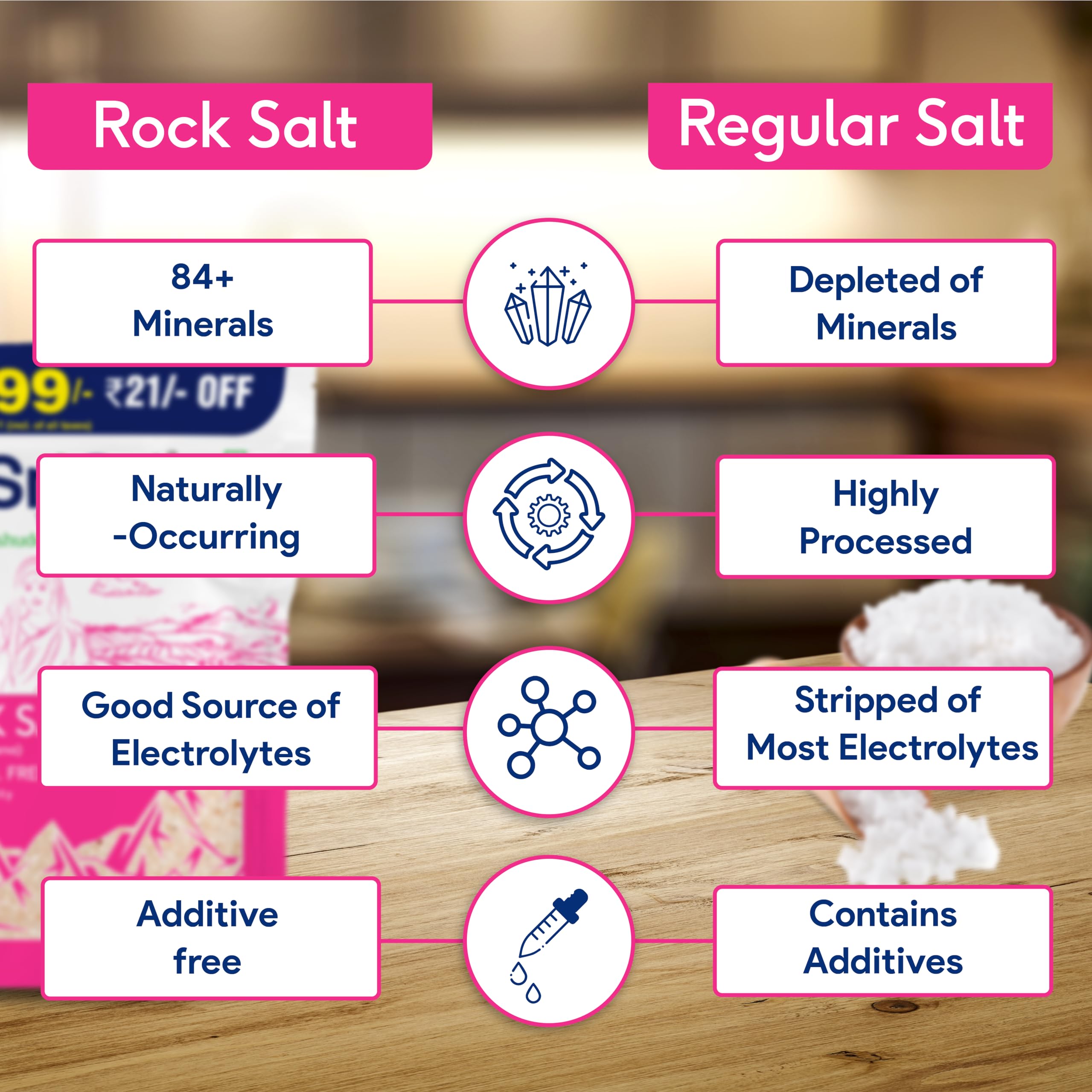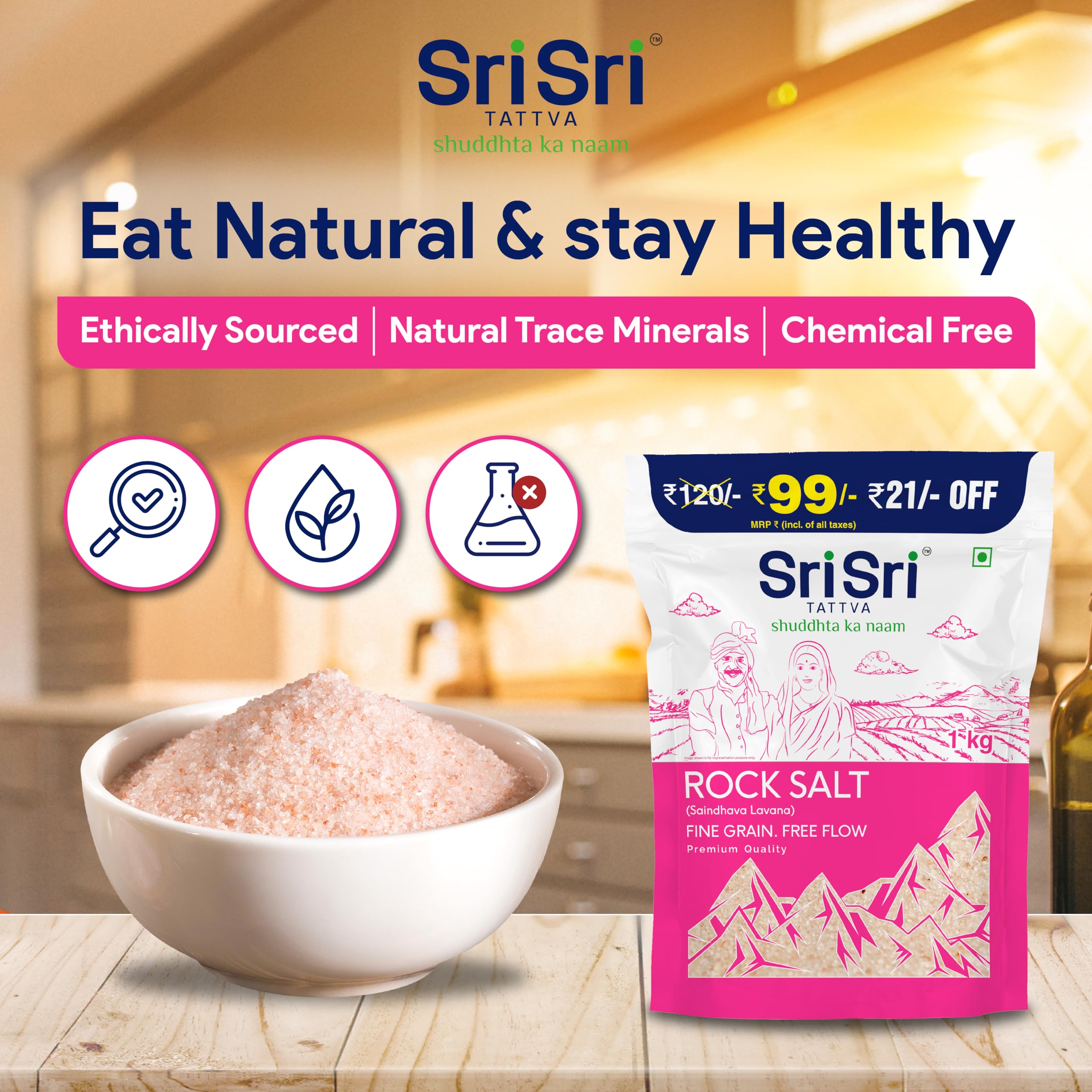 Rock Salt or Sendha Namak is among the oldest forms of Sodium Chloride and extensively used in daily meals. Ancient text has listed diverse benefits of Rock Salt. It is considered an excellent source of trace elements that help better absorption of nutrients and aids digestion. Add Sri Sri Tattva Rock Salt to flavour your daily food and benefit from its diverse attributes.
