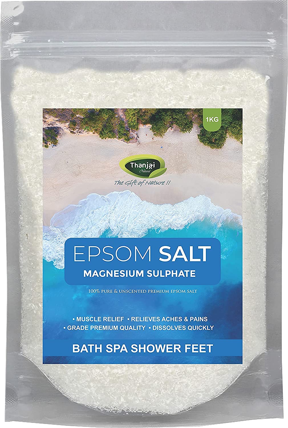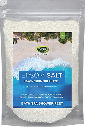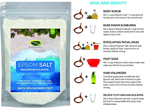 Thanjai Natural Epsom 1kg Bath Salt for Muscle Relief, Relieves Aches & Pain Granule Magnesium Sulphate) for Plants, Gardening,Water Soluble Fertilizer,Soil Manure