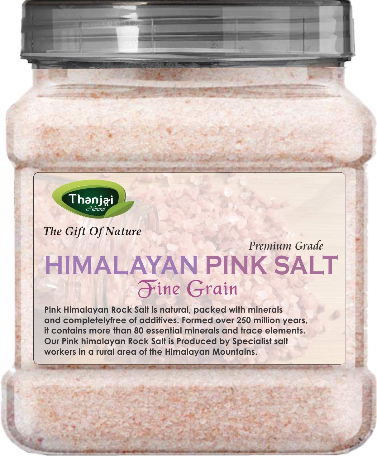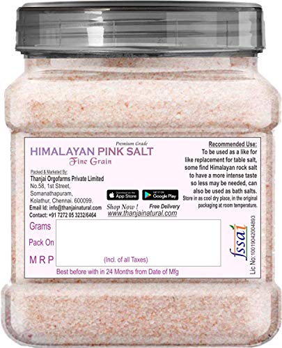 Thanjai Natural 100% Natural Himalayan pink salt of Himalayan Mountain is one of the most pure and mineral-rich food we can add to our diets. Unlike traditional table salt that has been bleached and refined of its minerals and healing properties Himalayan pink salt is raw and unrefined and is harvested from the foothills of the Himalayan range in Himalayan Mountain. Himalayan pink salt is an easy way to support optimum daily health for the entire family. Thanjai Natural Pink Salt makes the perfect substitution to table salt in any recipe and easily flows through any salt shaker. LOADED WITH 84 TRACE MINERALS With a stellar nutrient profile Himalayan Pink Salt has all the reasons to be on your dining table straight from the Himalayan range of Himalayan Mountain the only region in the World having the Pink Salt Mines. Donât believe us? Hereâs why. Loaded choc a bloc with 84 different kinds of trace elements since table salt is generally heavily refined and mixed with anti-caking agents to prevent clumping Himalayan Pink Salt is comparatively more natural and devoid of additives.