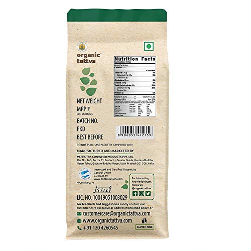 Our Mission: Our brand mission is to help people live a healthier wholesome life by providing them with a variety of 100 percent certified authentic organic foods. We value honesty integrity and continual self-improvement. We are committed to a sustainable environment zero-additive foods and complete customer-satisfaction. Brand philosophy: The brand organic tattva is based on the principles of health ecology fairness and care. At organic tattva the team works with accredited organic farmers who do not use fertilizers pesticides and genetically modified seeds so that their consumers can enjoy the benefits of nature and relish nutritious healthy pure and chemical-free food an important factor contributing to overall wellbeing.