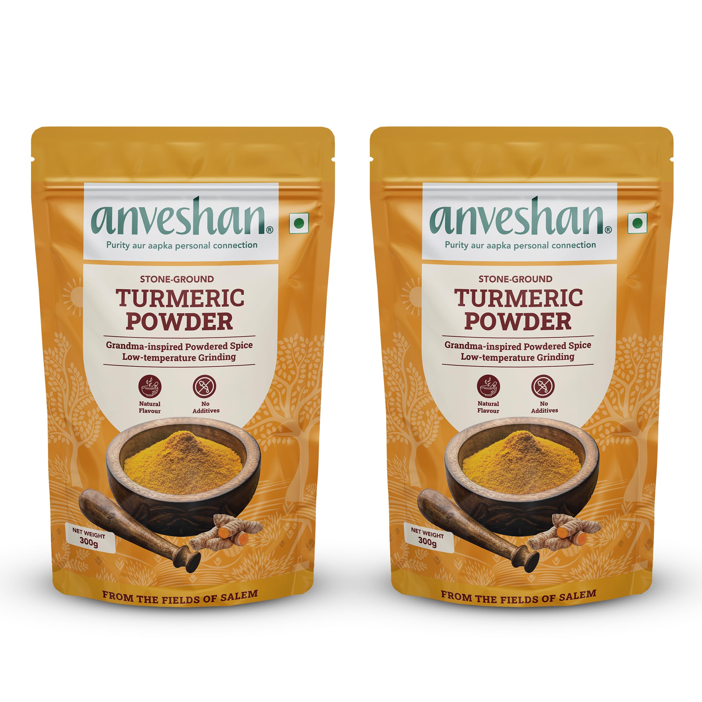 Anveshan Himalayan Turmeric Powder - 300g | Pack of 2 | High Curcumin | Hand Ground | Preservative Free | Rich In Essential Oil