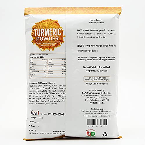 BAPS Amrut Turmeric powder preserves natural sensational aroma of Turmeric (Haldi) & promotes good health.