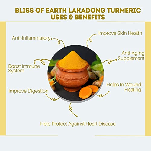 Bliss of Earth Organic Lakadong Turmeric Powder Bliss of Earth Lakadong Turmeric Powder is an organic versatile herb known for centuries for its health benefits. It offers an unmatched health benefits due to its highest natural curcumin content of 6-8% as compared to other turmeric powders. Grown in the hills of the Lakadong Village in Meghalaya Iindia this turmeric powder not only has a rich colour but also an intense flavour. It also has an aromatic fragrance that shows well when used in curries. Its natural flavor makes a perfect addition to your favourite curries vegetables or milk.