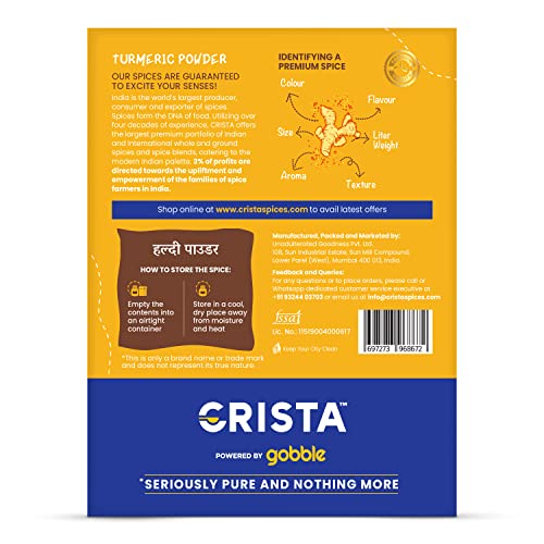 CRISTA 500 gms Turmeric Powder | Pure Turmeric | Ground in-house | Zero added Colours Fillers Additives & Preservatives | Natural