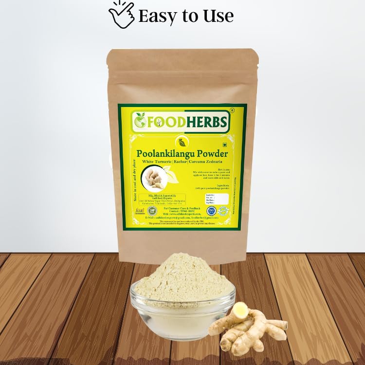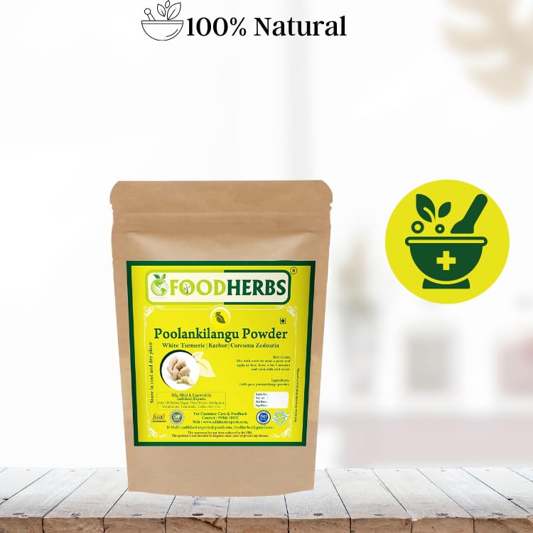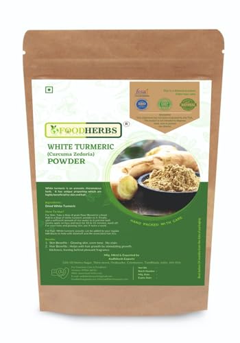 FOODHERBS WHITE TURMERIC POWDER PRODUCT DESCRIPTION: White turmeric powder is an aromatic herb. It has unique properties which are highly beneficial to the skin. The volatile oils in white turmeric have antioxidants which prevent acne and other skin problems. Due to its antibacterial properties it is used to heal minor cuts and bruises on the skin. This powder helps in the removal of unwanted facial hair and treat uneven skin tone. It also helps in healing any damage to the skin and prevents infections. BENEFITS: Fights acne Heals cuts & wounds Anti allergic Produces even skin tone No stain Glowing skin on regular use PRODUCT FEATURES: 1. Fine Powder 2. 100% Pure White Turmeric Powder 3. No Chemical Interactions 4. Can be used as face wash