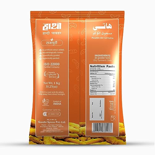 Hathi presents this turmeric powder which is made of dry turmeric only and best before 8 months from the manufacturing date.