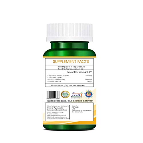 Heera Ayurvedic Research Foundation Turmeric Curcumin Extract 95% | 60 PCS. Veg Capsule (800 mg) ANTIOXIDANT